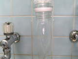 左の写真を見てください。ボトルの口から出てきた水は、風船のように中が空洞になっているでしょー。